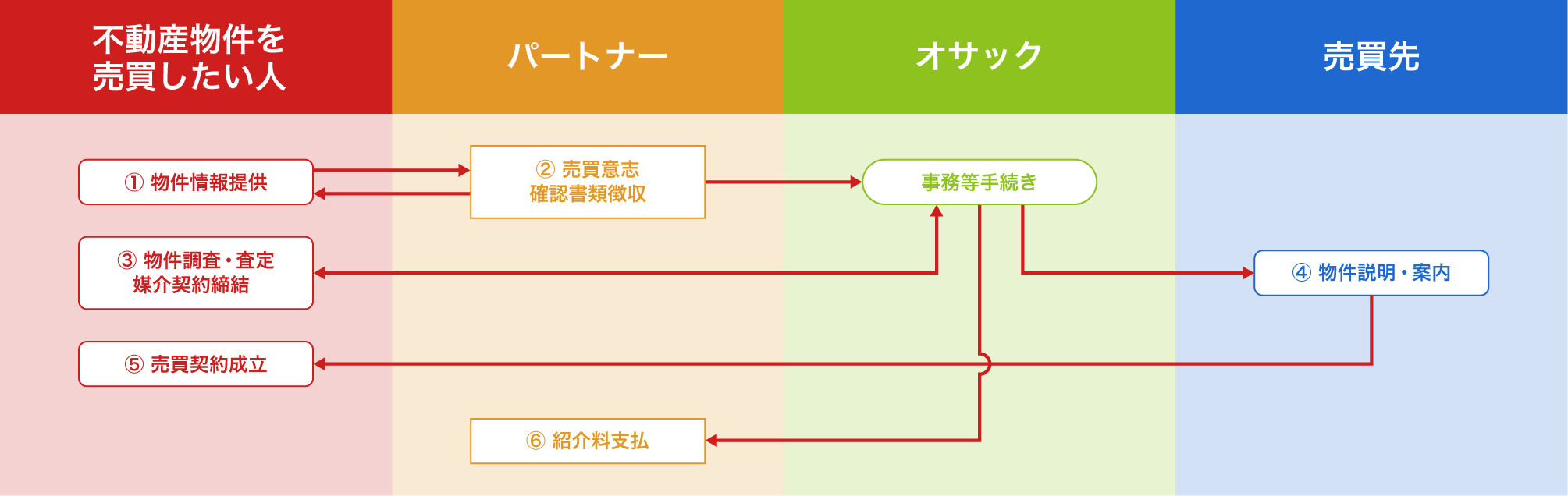 - オサックは媒介契約を受けた物件を購入希望者様へご紹介・ご案内を行います。