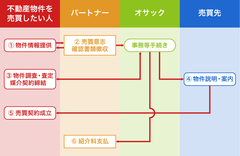 - 残金決済完了後に、オサックからパートナーへ紹介者特典をお渡しします。